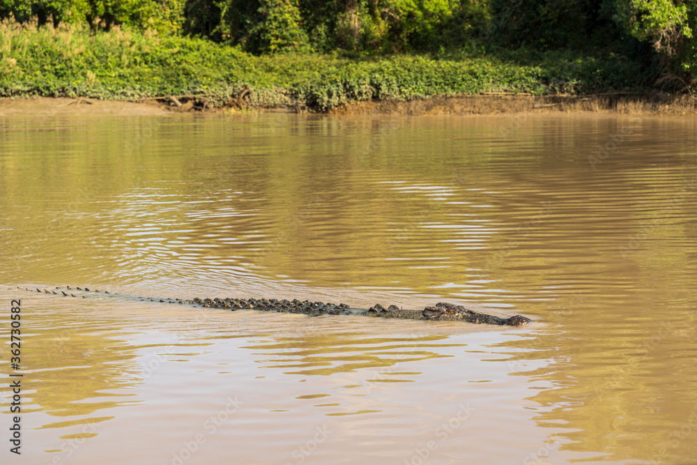 Fototapeta Crocodile lurking in the murky water of Adelaide River