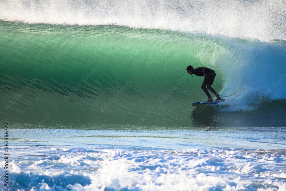 Fototapeta Surfer on Blue Ocean Wave riding on surfing board in Asia