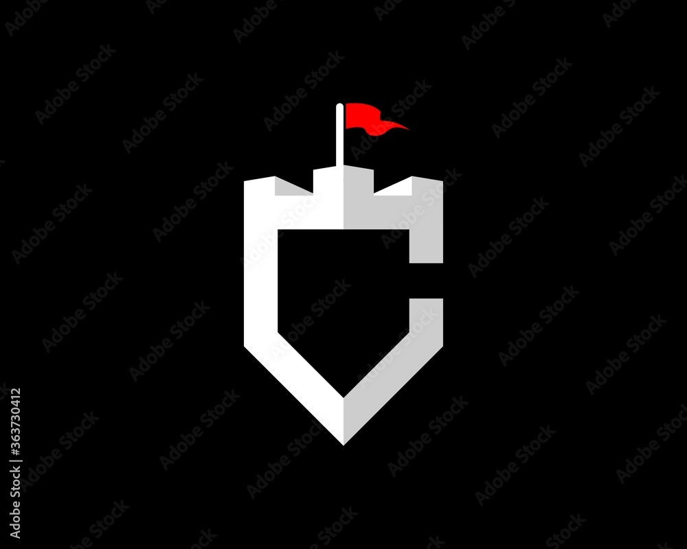Fototapeta Outline fortress and flag with C letter initial