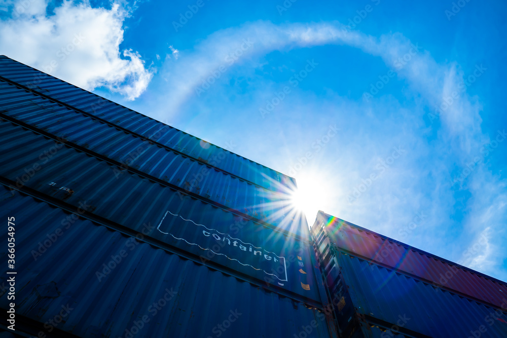 Fototapeta Low Angle View of Logistic Industrial Containers box from Cargo freight ship,Cargo containers at harbor by the sunlight of the sky