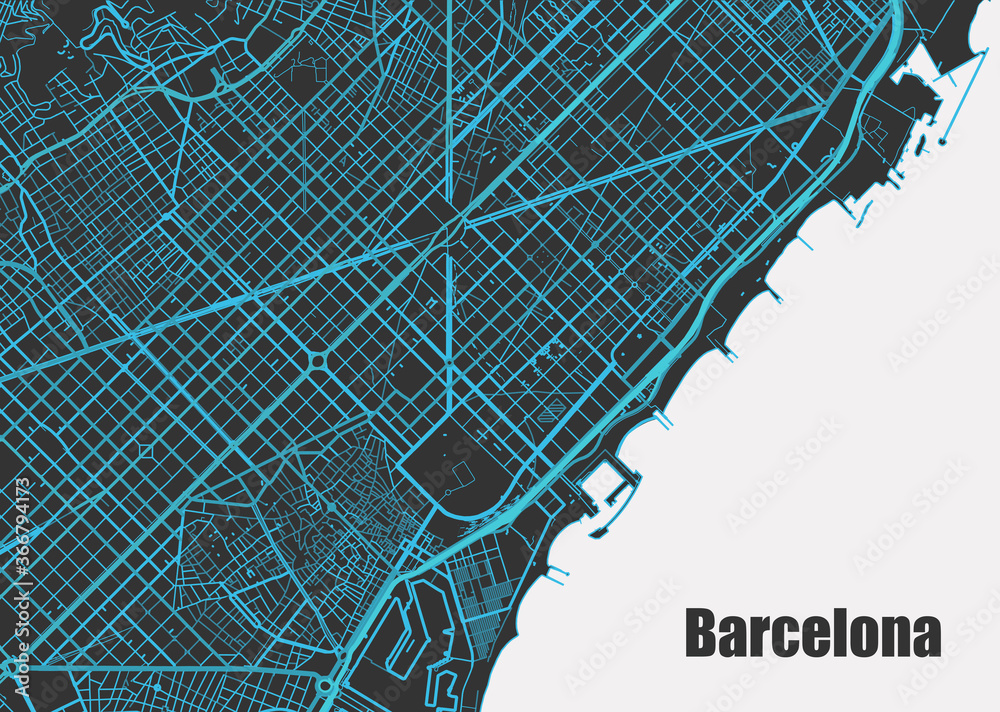 Fototapeta Stylish vector high-tech map of Barcelona. with blue streets