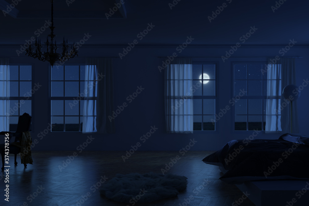 Fototapeta 3d rendering of classic bedroom apartment in the moonlight