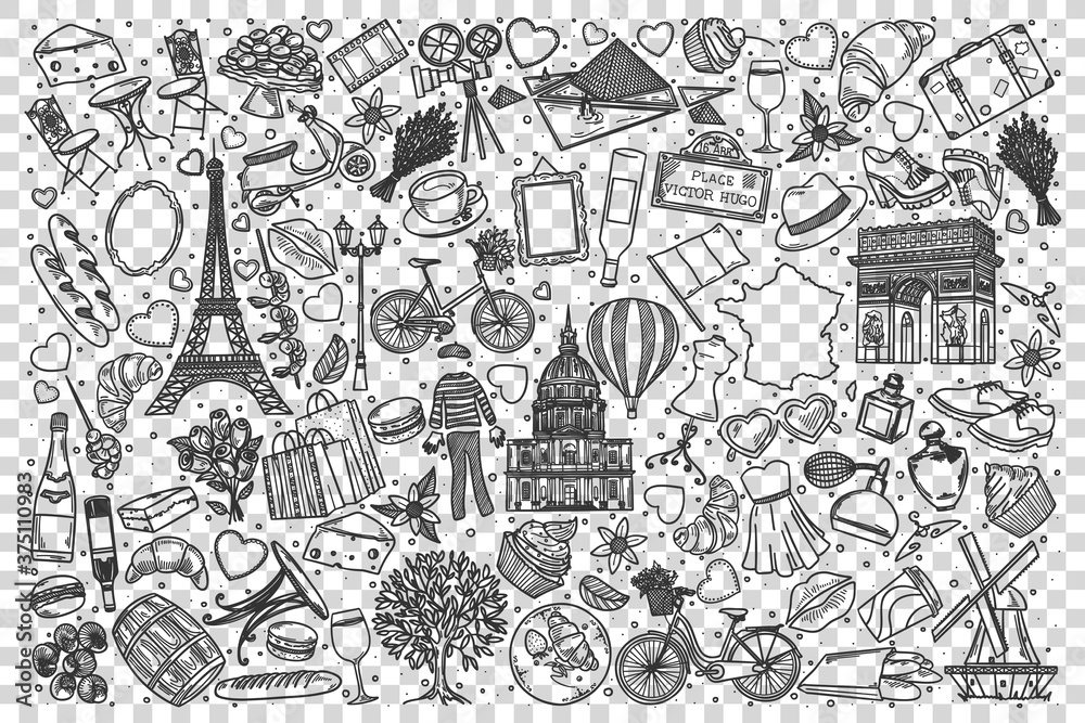 Fototapeta France doodle set