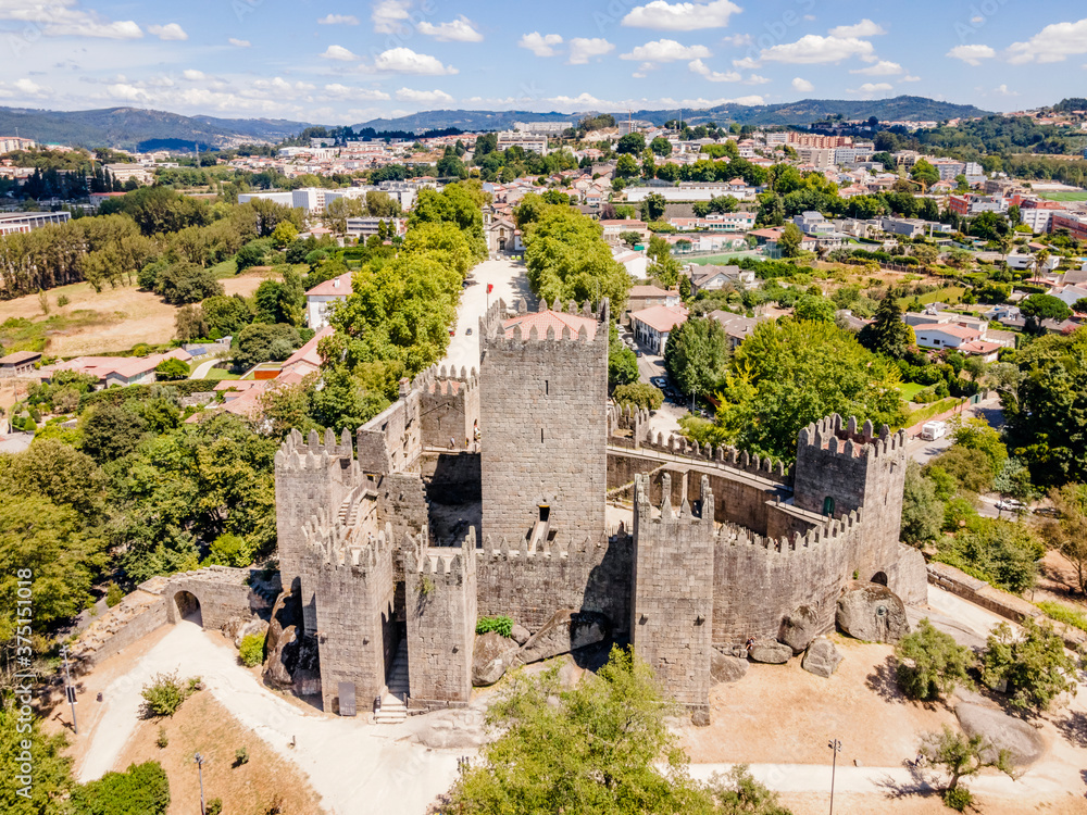 Fototapeta Aerial view of castle of Guimaraes, Portugal