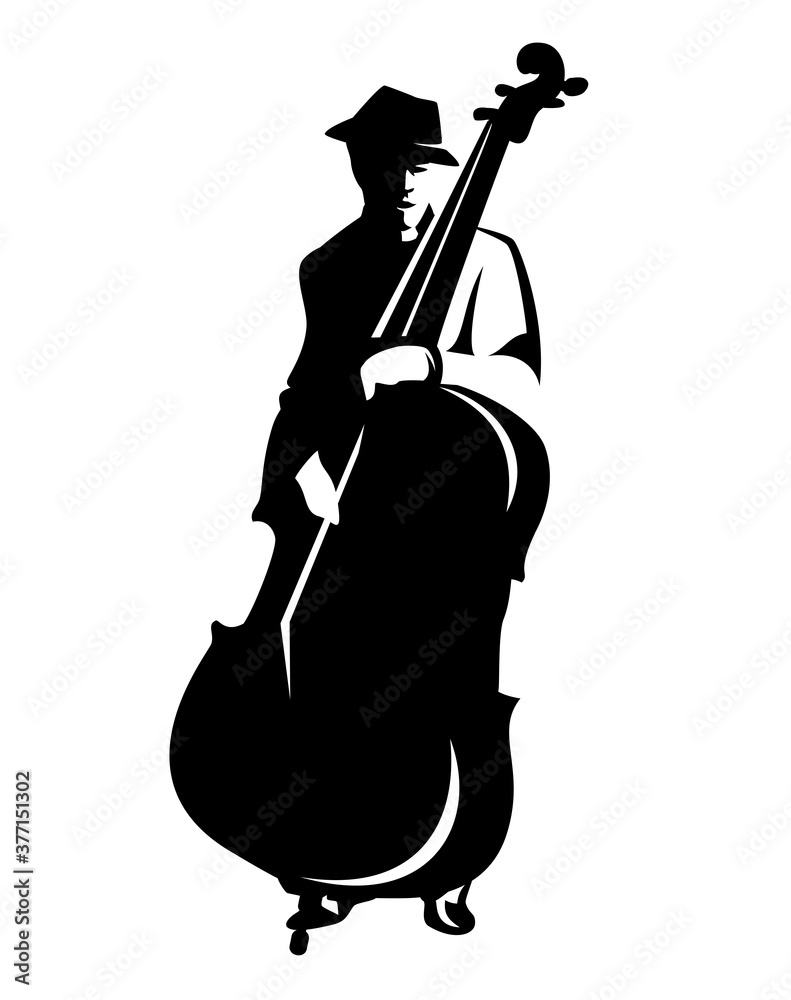 Fototapeta jazz man playing contrabass - blues performer black and white vector outline
