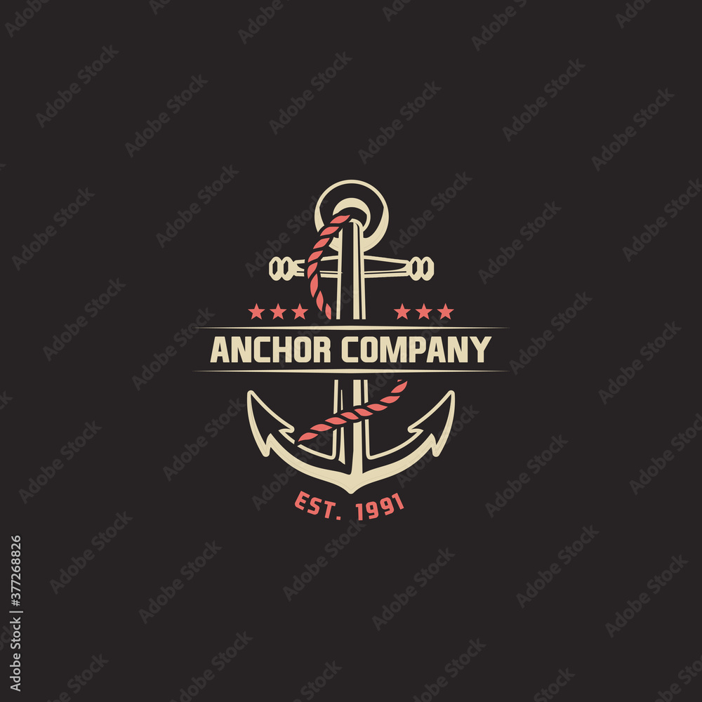 Fototapeta Marine round retro emblem in hipster style with anchor and inscriptions