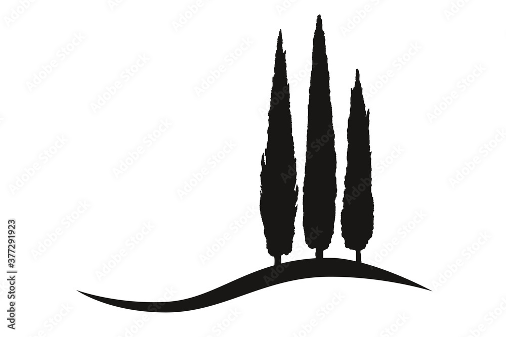 Fototapeta three mediterranean vector cypress tree silhouettes