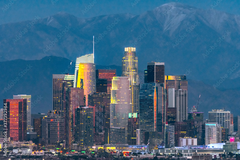 Fototapeta Los Angeles skyline at twilight