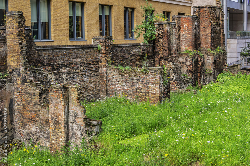 Fototapeta Ancient remains of old Roman city walls in London