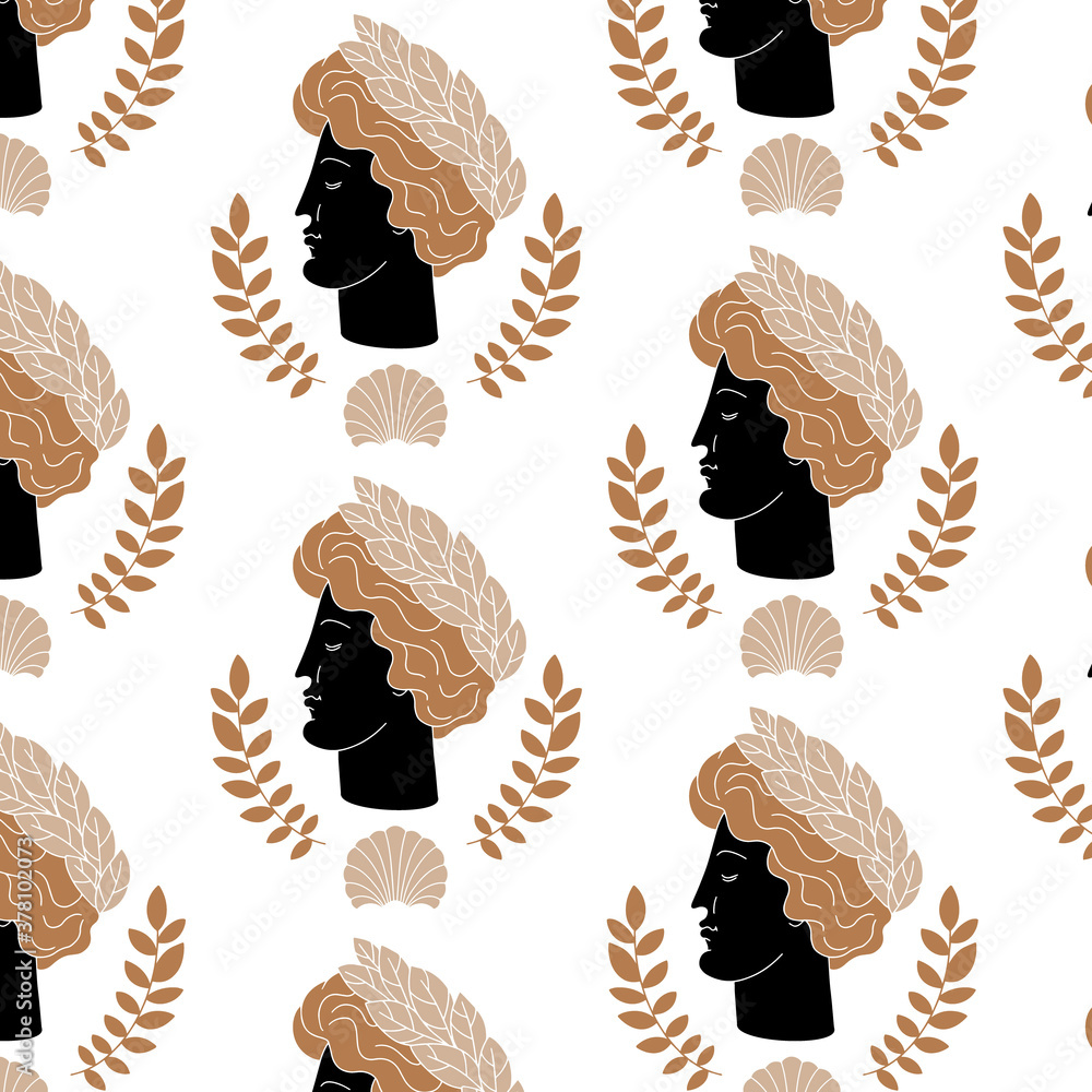 Fototapeta Vector pattern with hand drawn illustration of antique head