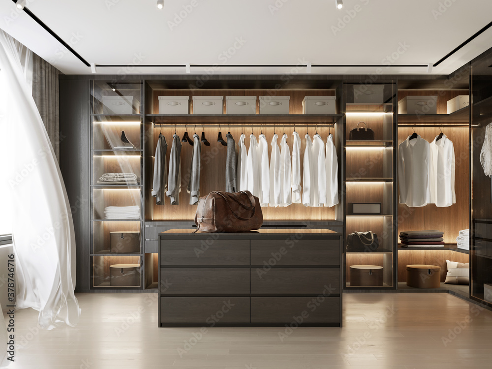 Fototapeta 3d rendering of a Luxury modern dark wood dressing room