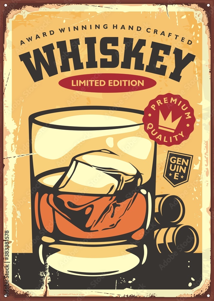 Fototapeta Glass of whiskey retro sign design