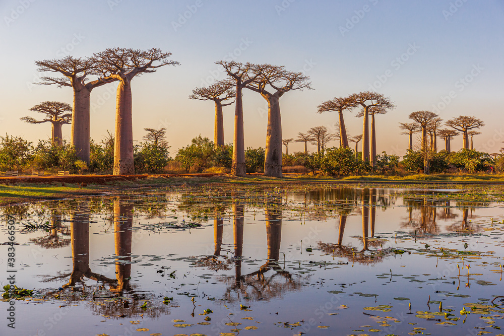 Fototapeta Beautiful Baobab trees at sunset at the avenue of the baobabs in Madagascar