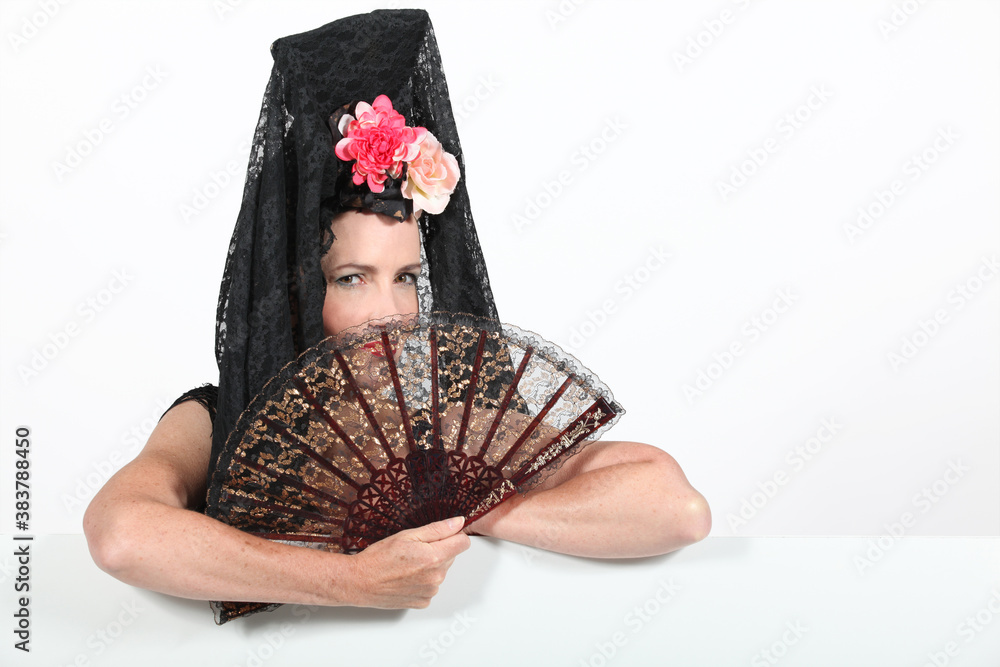 Fototapeta Woman with mantilla and fan