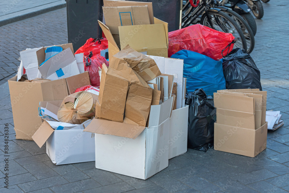 Fototapeta Boxes and Bags of Trash at Street
