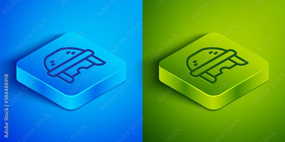 Fototapeta Isometric line Hockey helmet icon isolated on blue and green background