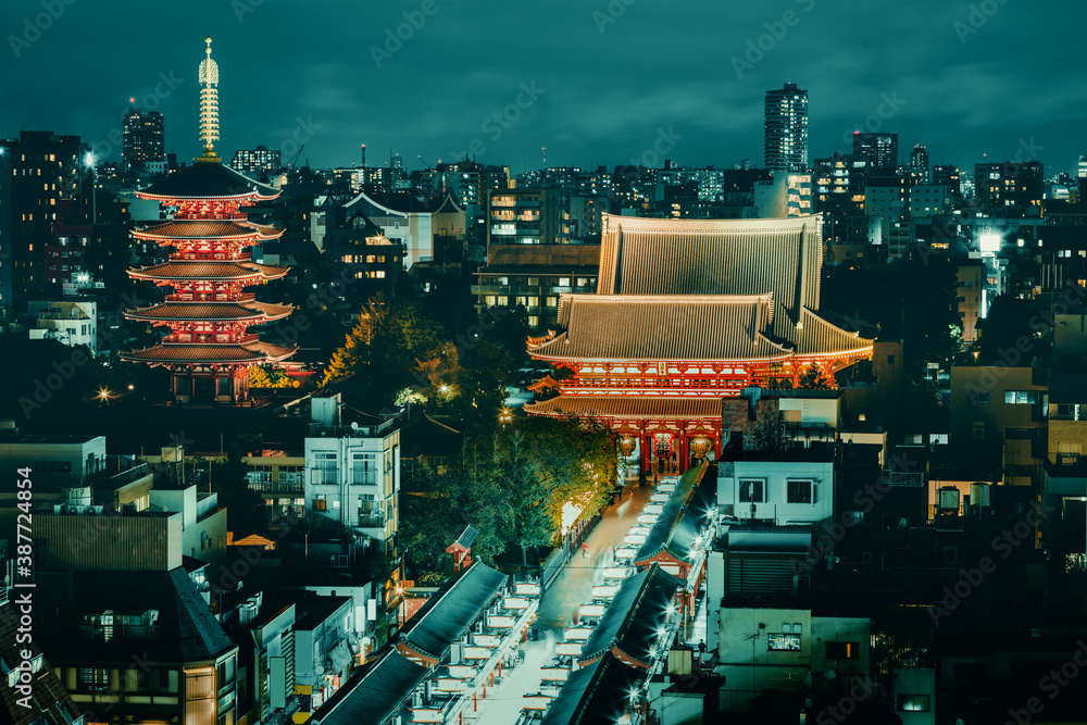 Fototapeta Crowd of people walking on Nakamise Dori street of the Asakusa Kaminarimon in To