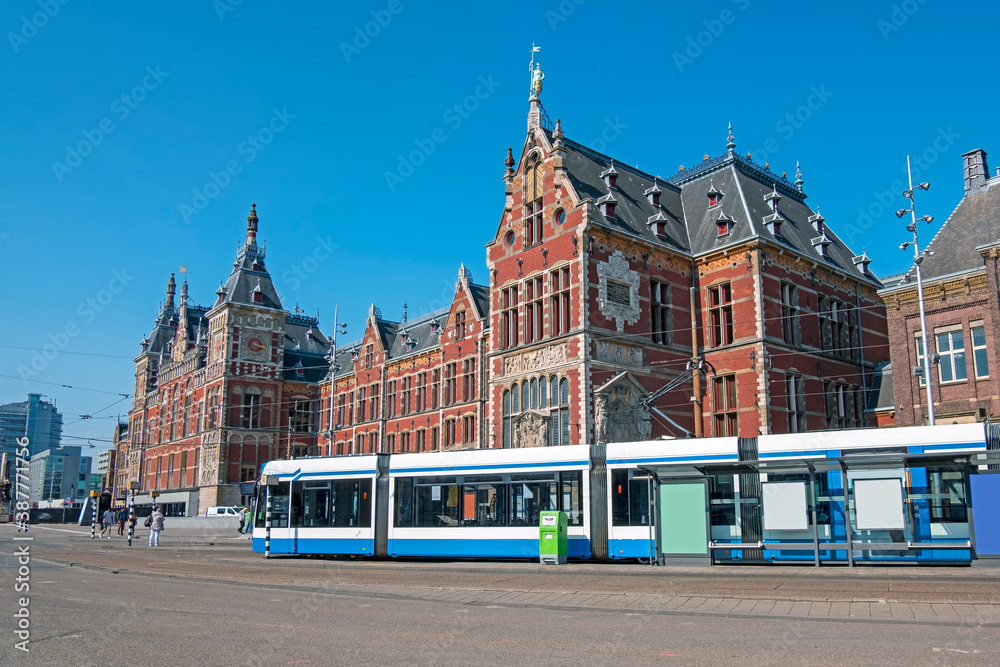 Fototapeta Trams waiting at Central Station in Amsterdam the Netherlands