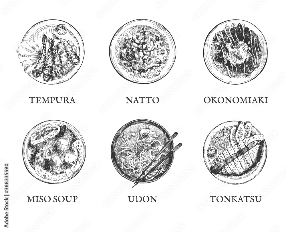 Fototapeta Japanese exotic cuisine kitchen dishes