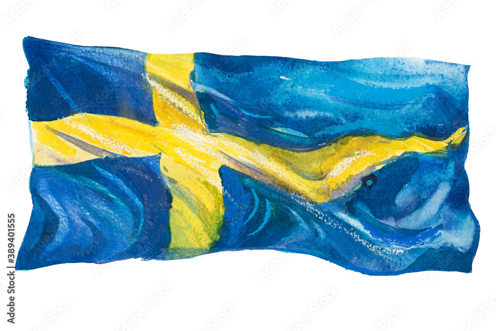 Fototapeta Sweden, Swedish flag. Hand drawn watercolor illustration.