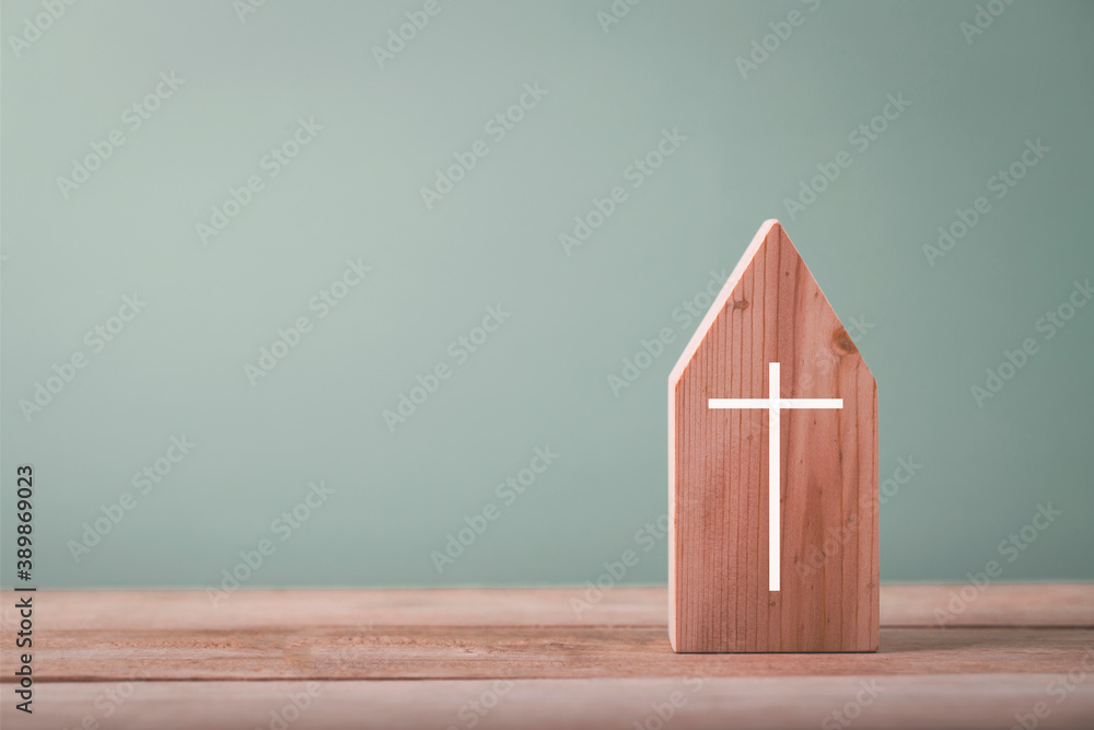 Fototapeta Small house church for catholics , community of Christ , Concept of hope , christianity , faith, religion and church online