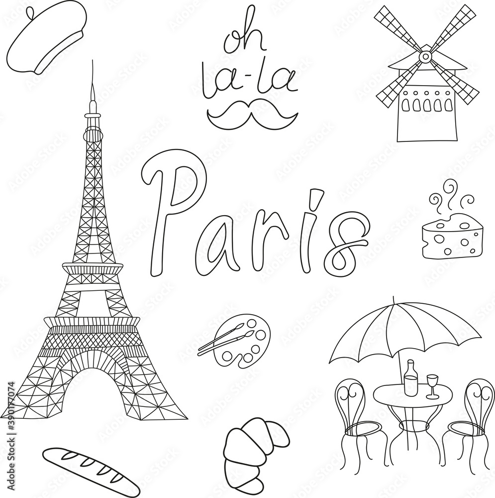 Fototapeta travel to paris set of drawings in doodle style