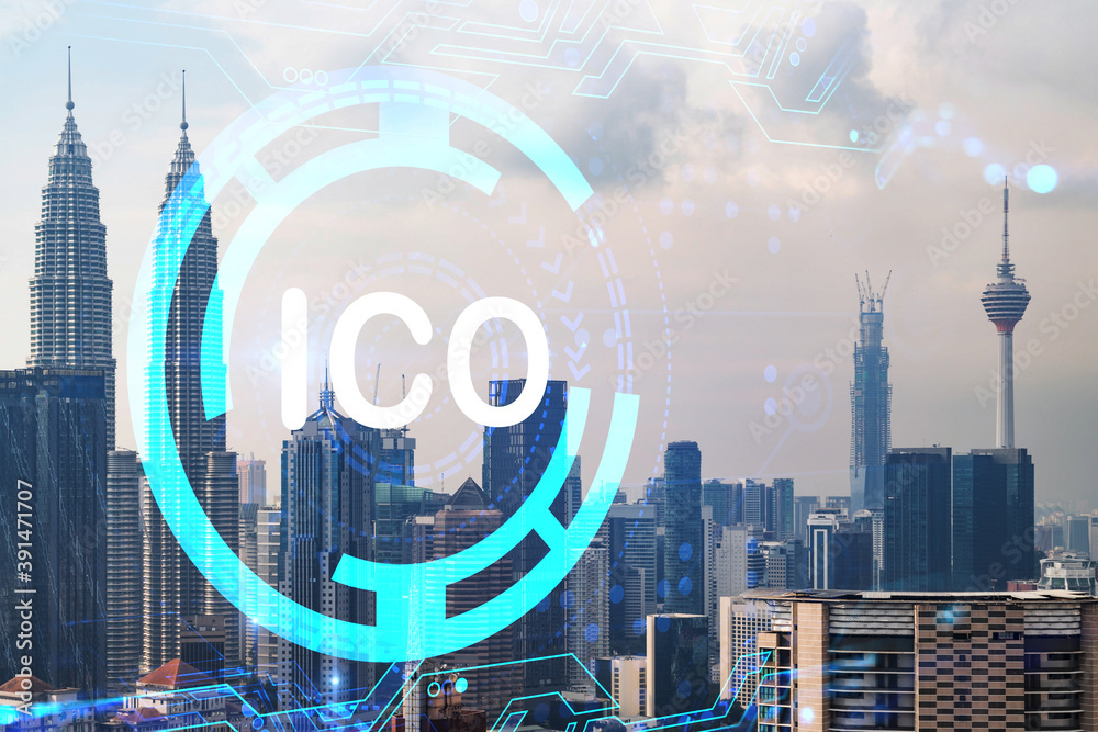 Fototapeta ICO icon hologram over panorama city view of Kuala Lumpur