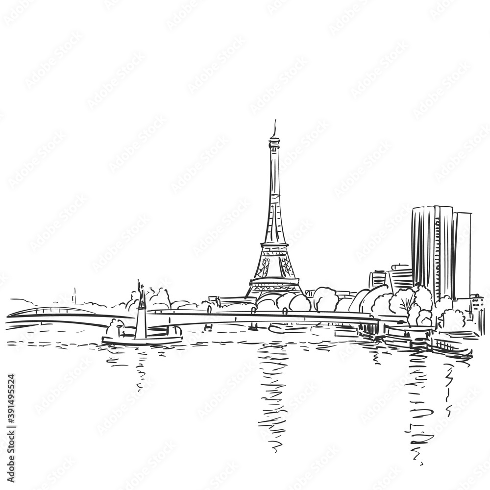 Fototapeta Eiffel Tower and river Seine vector sketch