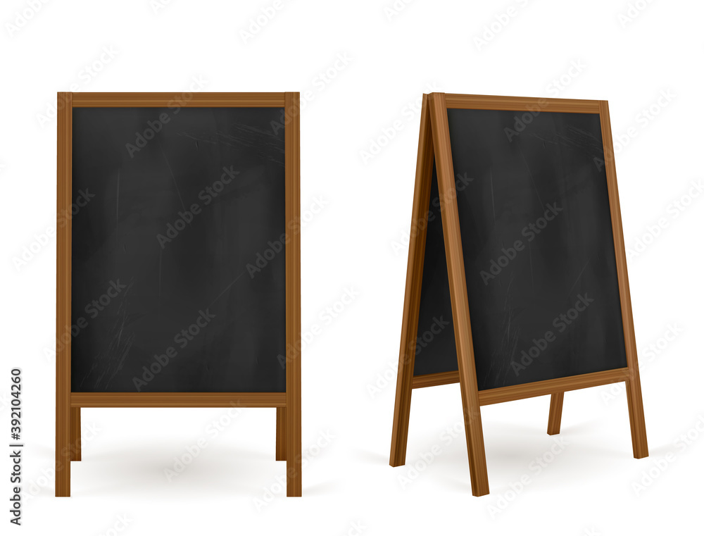Fototapeta Pavement sign, street chalk board cafe menu, advertisement outdoor stand