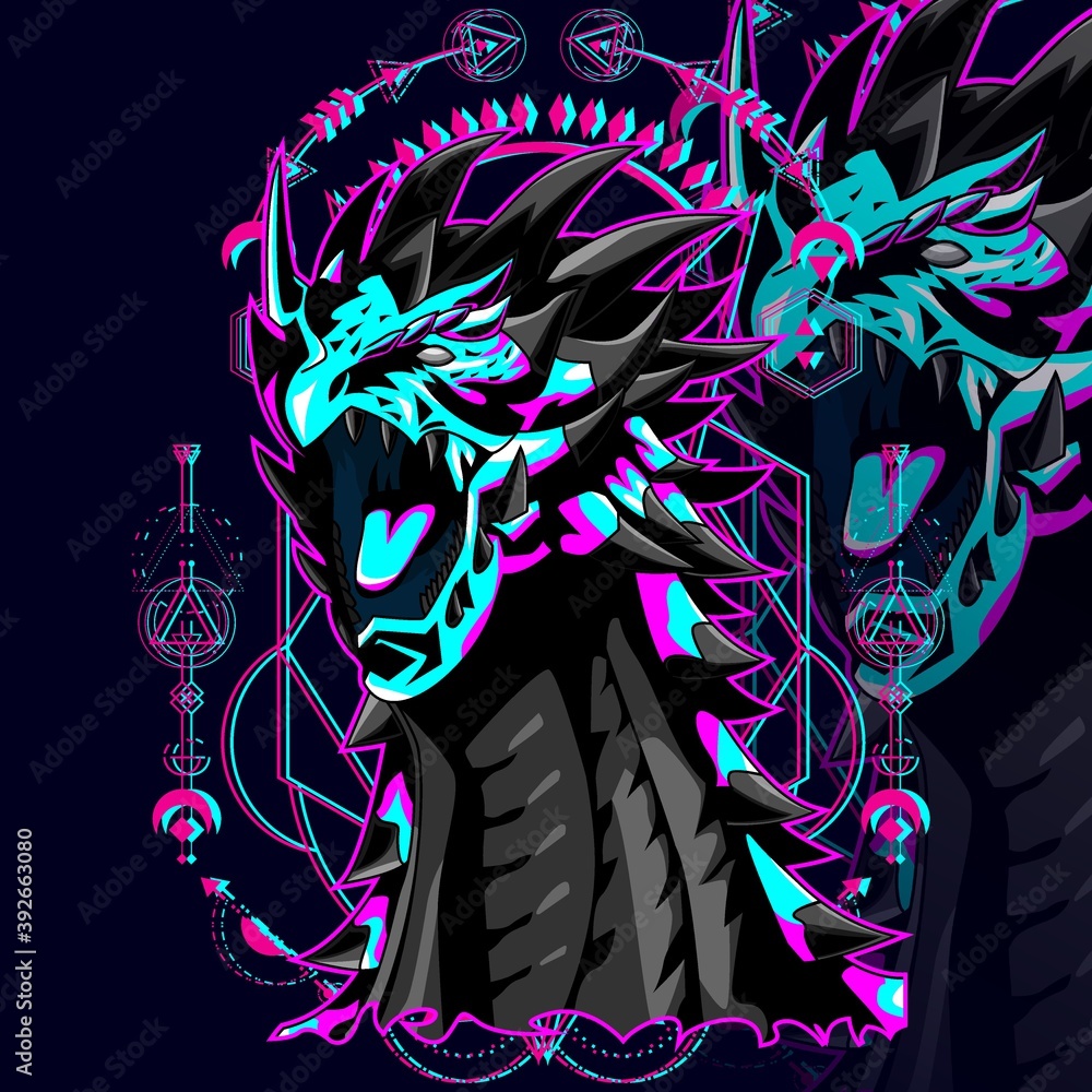 Fototapeta Dragon glitch angry vector cyberpunk