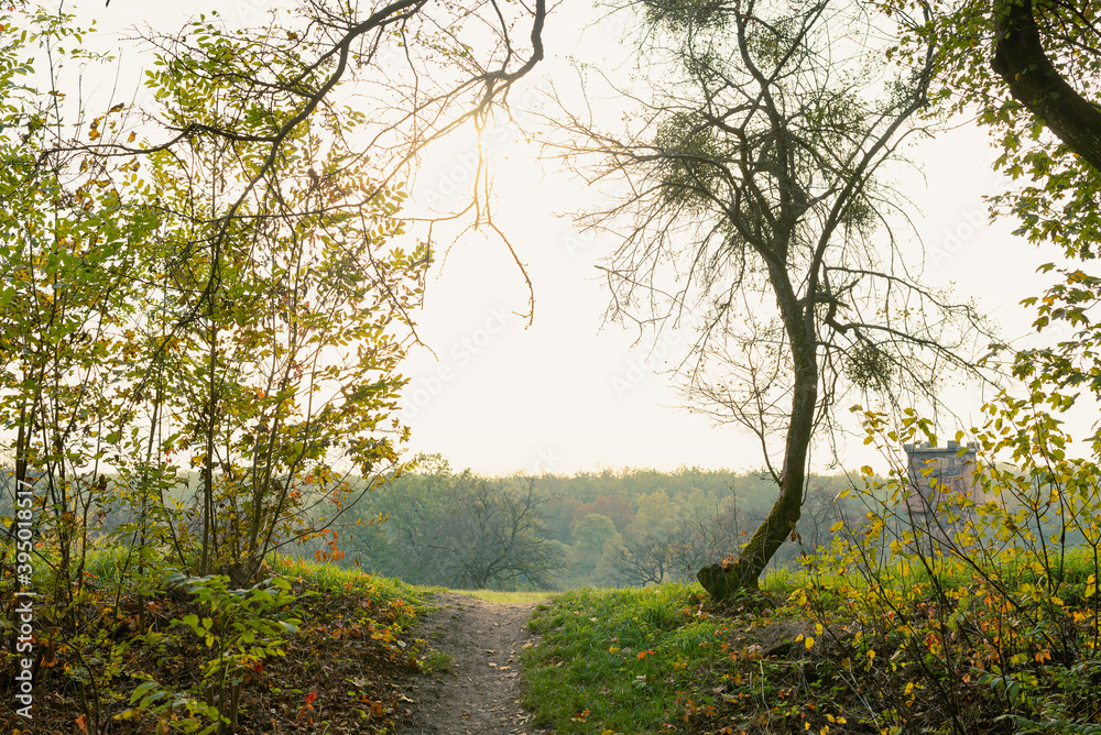Fototapeta Beautiful morning park. Тrail at Park