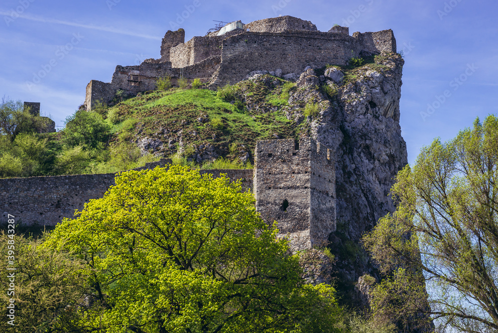 Fototapeta Mediaeval castle on a hill in Devin, former village nowdays part of Bratislava c