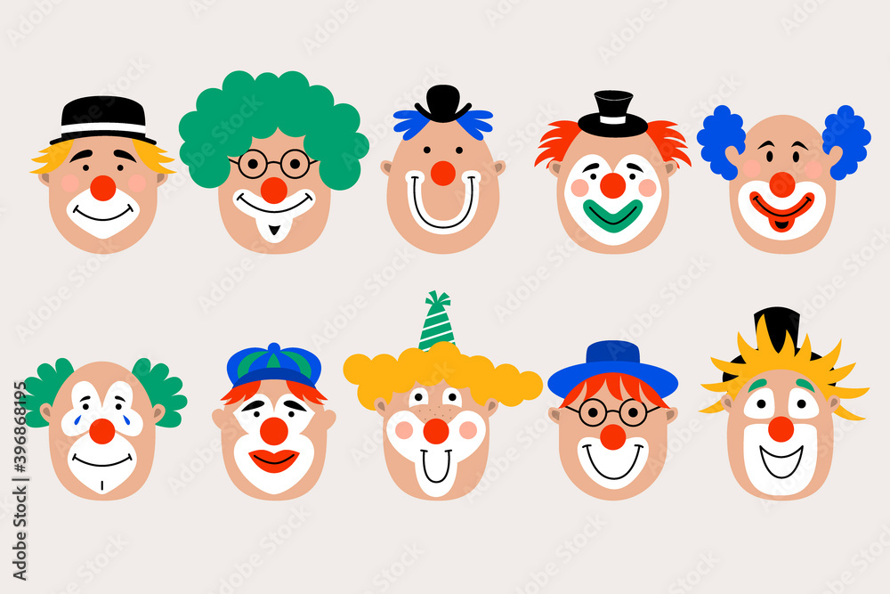 Fototapeta Clowns faces icon set. Vector flat illustration.