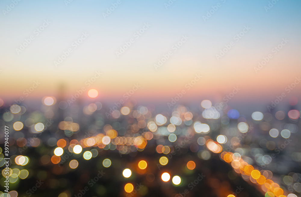 Fototapeta Bokeh light and blur city skyline sunrise background