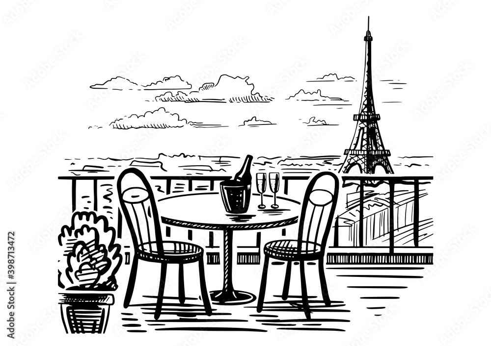 Fototapeta A romantic evening in a cafe on the terrace overlooking Paris