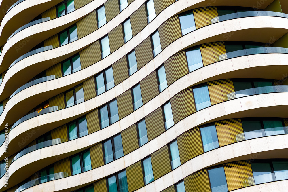 Fototapeta Architectural abstract, exterior of a modern apartment Riverwalk in Vauxhall, Lo