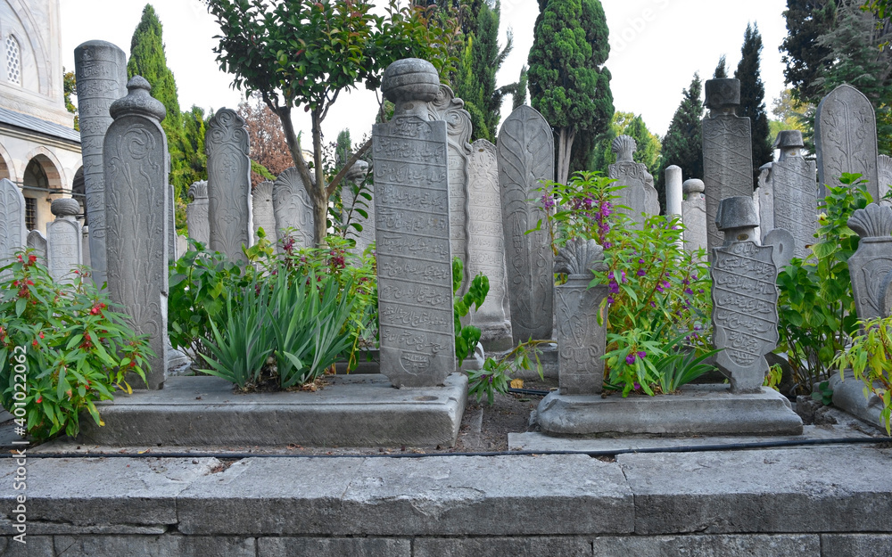 Fototapeta The historic graveyard in the grounds of Suleymaniye mosque in Istanbul, Turkey