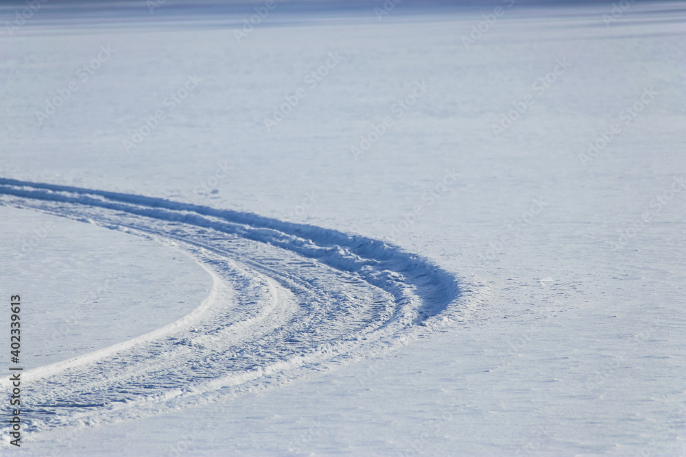 Fototapeta snowmobile tracks on a frozen lake in finland
