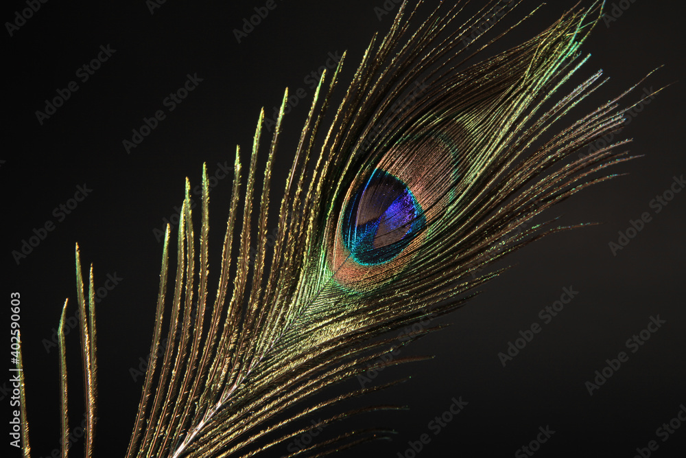Fototapeta Peacock feather isolated on a black background