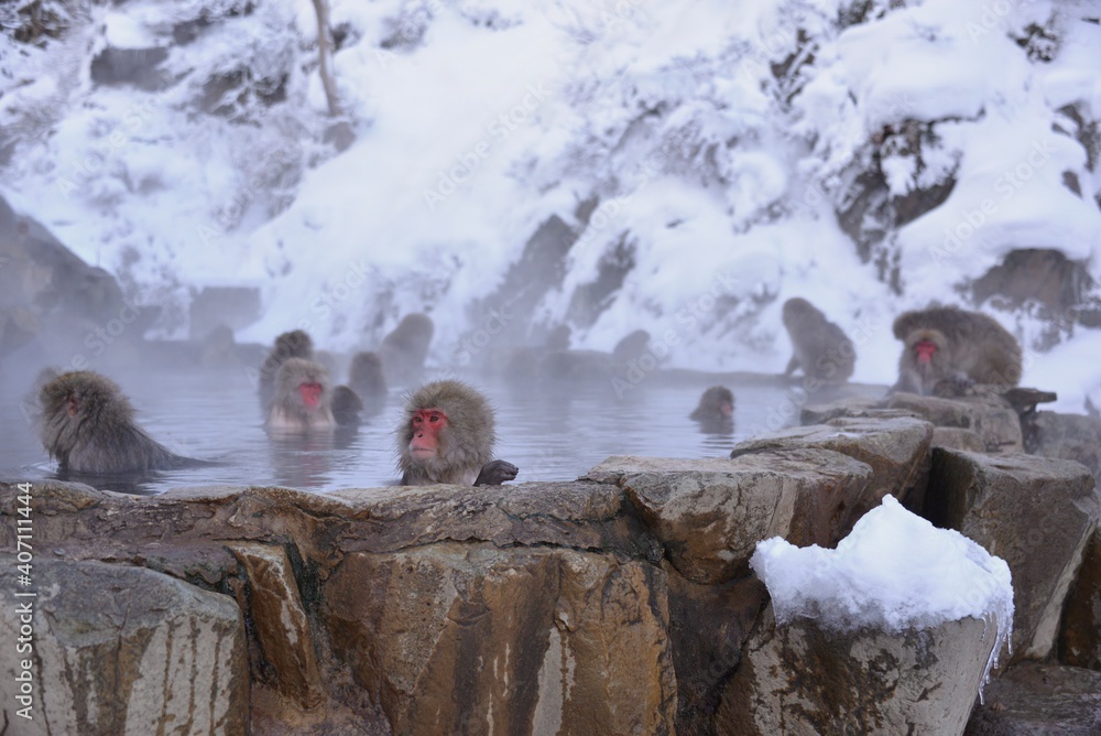 Fototapeta Japanese monkeys in Nagano prefecture in Japan
