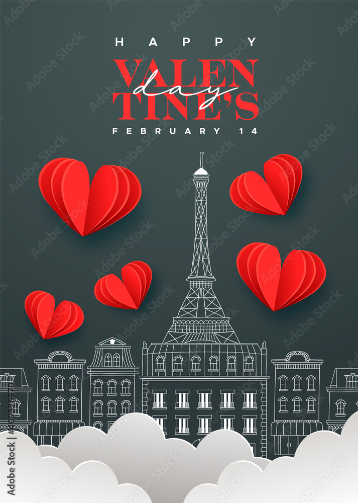 Fototapeta Valentine's Day chalk paris city doodle heart card