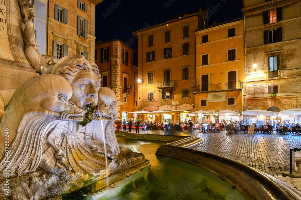 Fototapeta Closeup of the Pantheon Fountain or Fontana del Pantheon in the Piazza della Rot