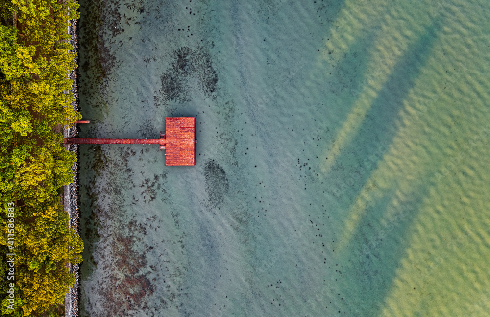 Fototapeta Small wooden pier on lake Balaton, Hungary