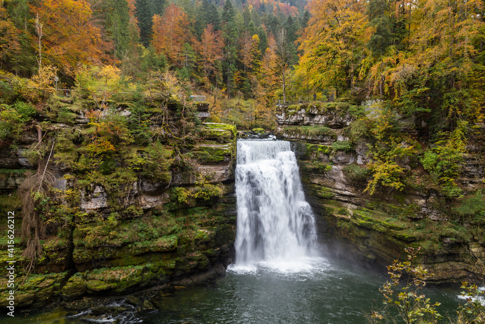 Fototapeta Couleurs d'automne au saut du Doubs, une chute de 27 mètres de hauteur sur le Do