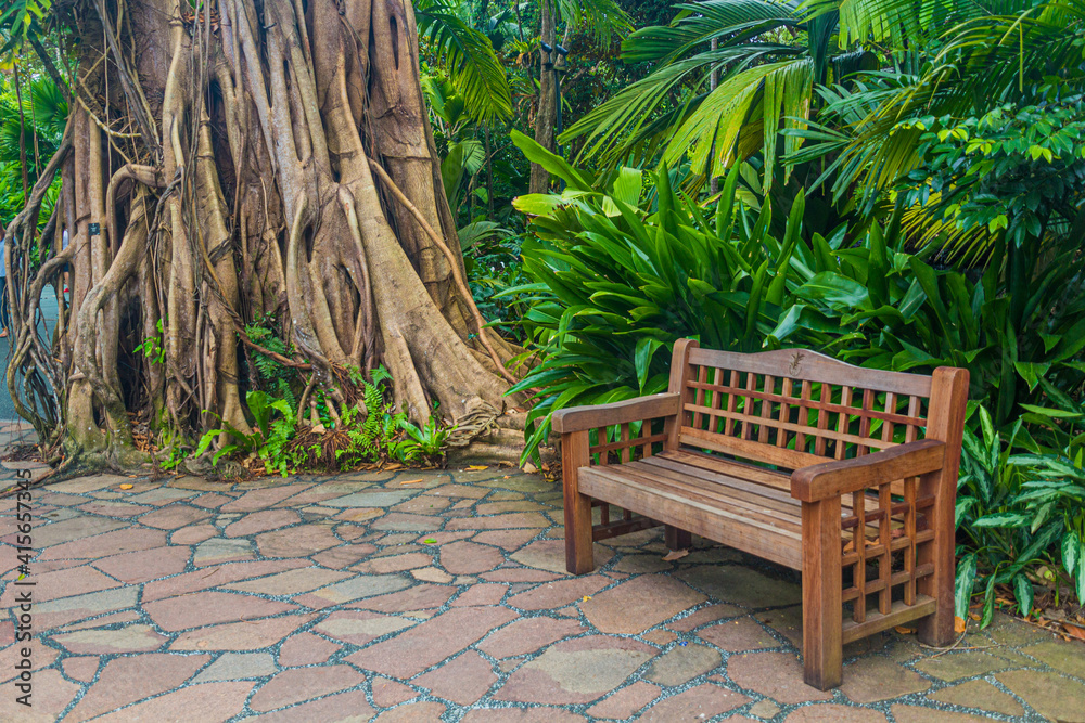 Fototapeta Bench in Singapore Botanic Gardens.
