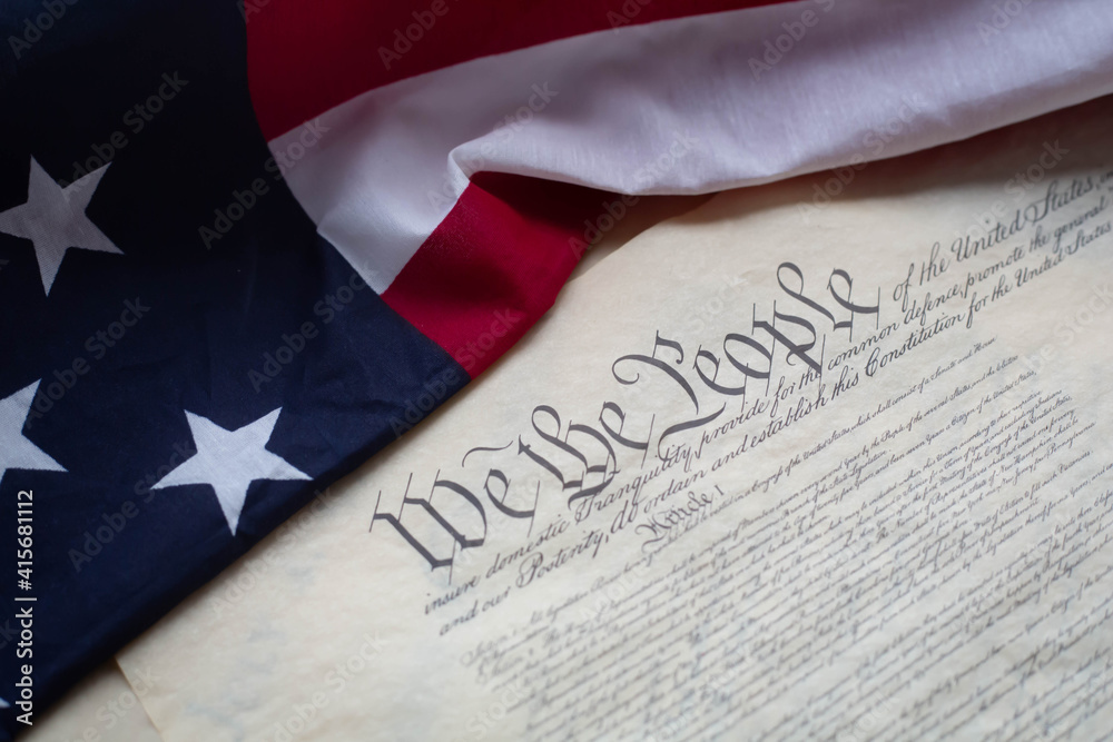 Fototapeta The flag and the constitution of United states of America