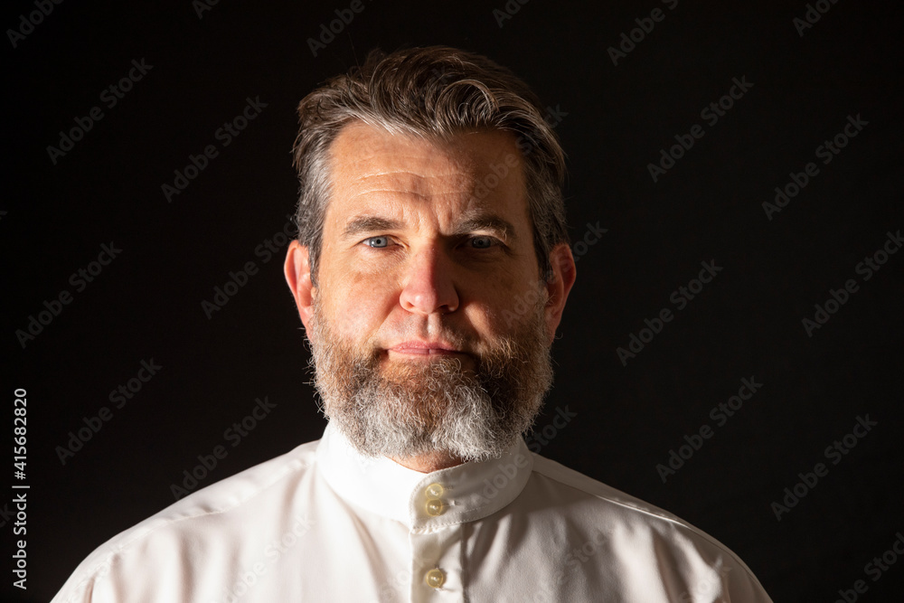 Fototapeta Portrait of man in traditional mennonite style of beard with no moustache in studio