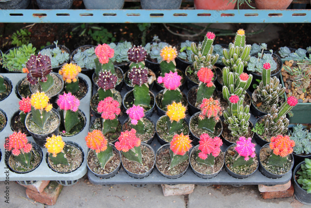 Fototapeta blooming cactus at a flower market in bangkok (thailand)