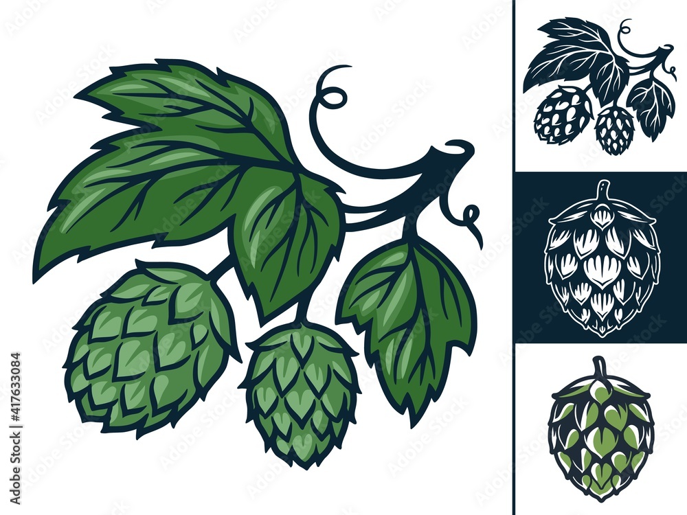 Fototapeta Set of craft beer hop for design logo and emblem in pub or bar
