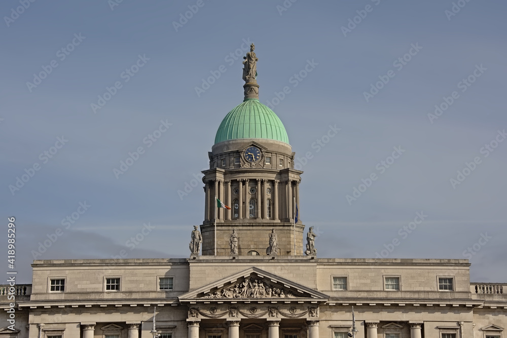 Fototapeta Dome of the customhouse in Dublin, Ireland, decorated with statues of Mercury, P